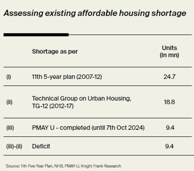 - Urban affordable housing deficit of 9.4 mn units, projected to surge to 30 mn units by 2030