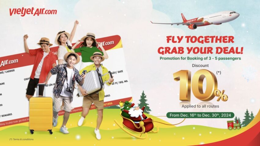 Vietjet, Vietnam’s new-age carrier, is thrilled to announce its special promotion of the year, offering travellers an exciting opportunity to save on group bookings. From December 16 to December 30, 2024, passengers can enjoy a 10% discount (excluding taxes and fees) when booking Eco tickets for groups of 3 to 5 people (excluding infants under 2 years old).